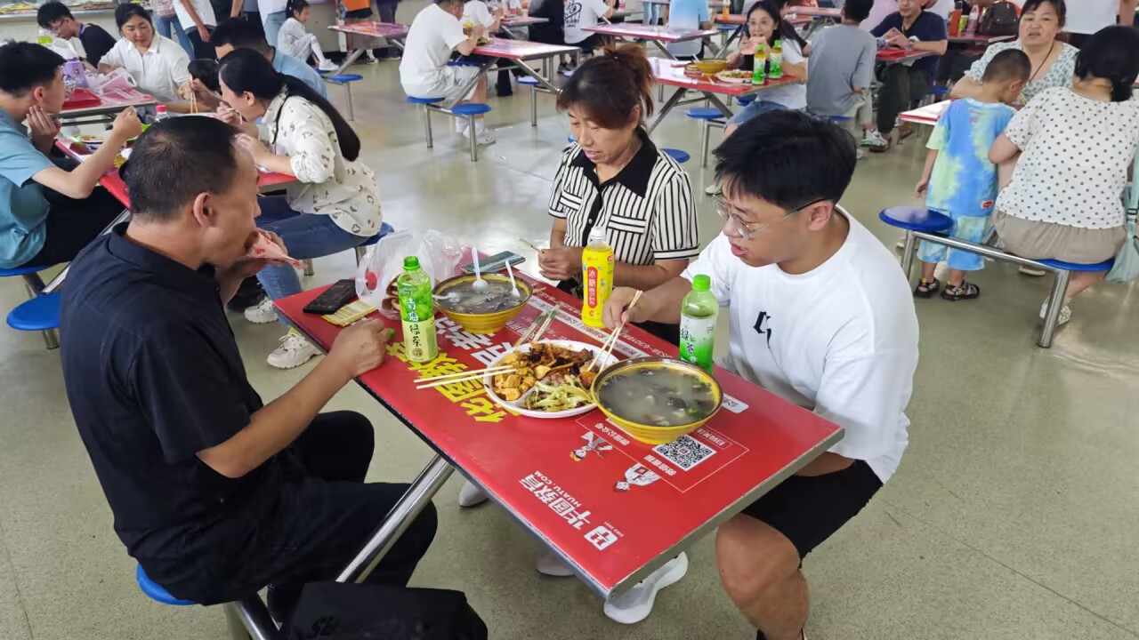 进入校园后,热情、笑容是志愿者们洋溢的闪光,员工志愿者接过她手中的行李箱。