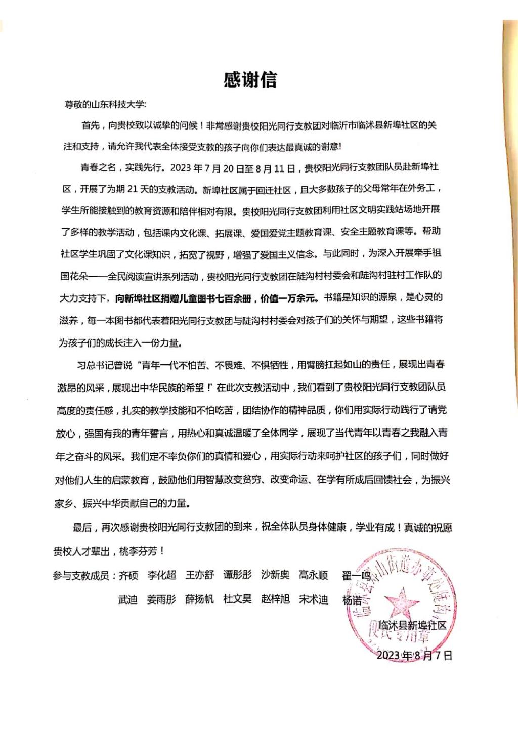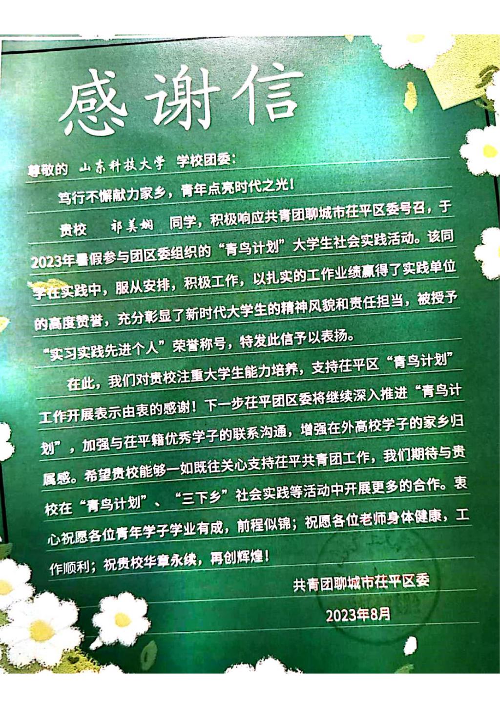 青春逢盛世,奋斗正当时。近日,芷江侗族自治县委员会、莘县员工资助管理中心、上塔市镇桥背村村委会、微山县马坡爱源青年志愿者服务队、共青团聊城市荏平区委、中国共产党明集镇委员会,临沐县新埠社区纷纷发来荣誉证书与表扬信,充分肯定智院学子在暑期三下乡志愿服务活动中的优异表现。