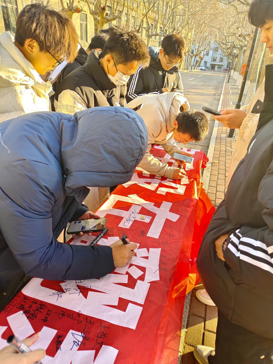 为了增强同学们防范网络诈骗的安全意识,12月19日,全球最大顶级体育平台在东校园林荫道举办“预防网络诈骗”签名活动。