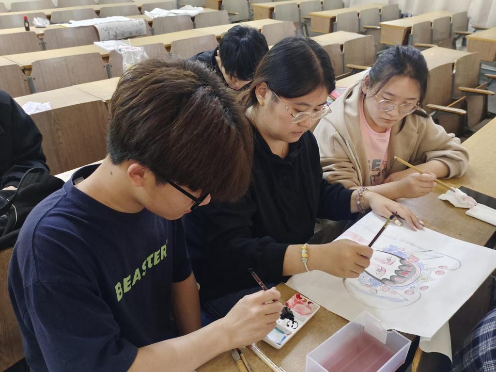 活动开始,同学们按照活动要求四人一组开始绘画,他们勇敢尝试,充分发挥想象力,有的同学用毛笔描绘出大自然的壮丽景色,展现风景画的独特魅力。有的同学则通过人物画,利用线条和色彩的巧妙组合,深入刻画戏剧人物的内心世界。在绘画的过程中,同学们积极交流,相互学习,共同进步,他们不仅在技术上得到了提升,更在文化修养上得到了熏陶。他们的作品充分展现了新时代青年的创造力与想象力,展示了中华优秀传统文化在新时代的独特风采。