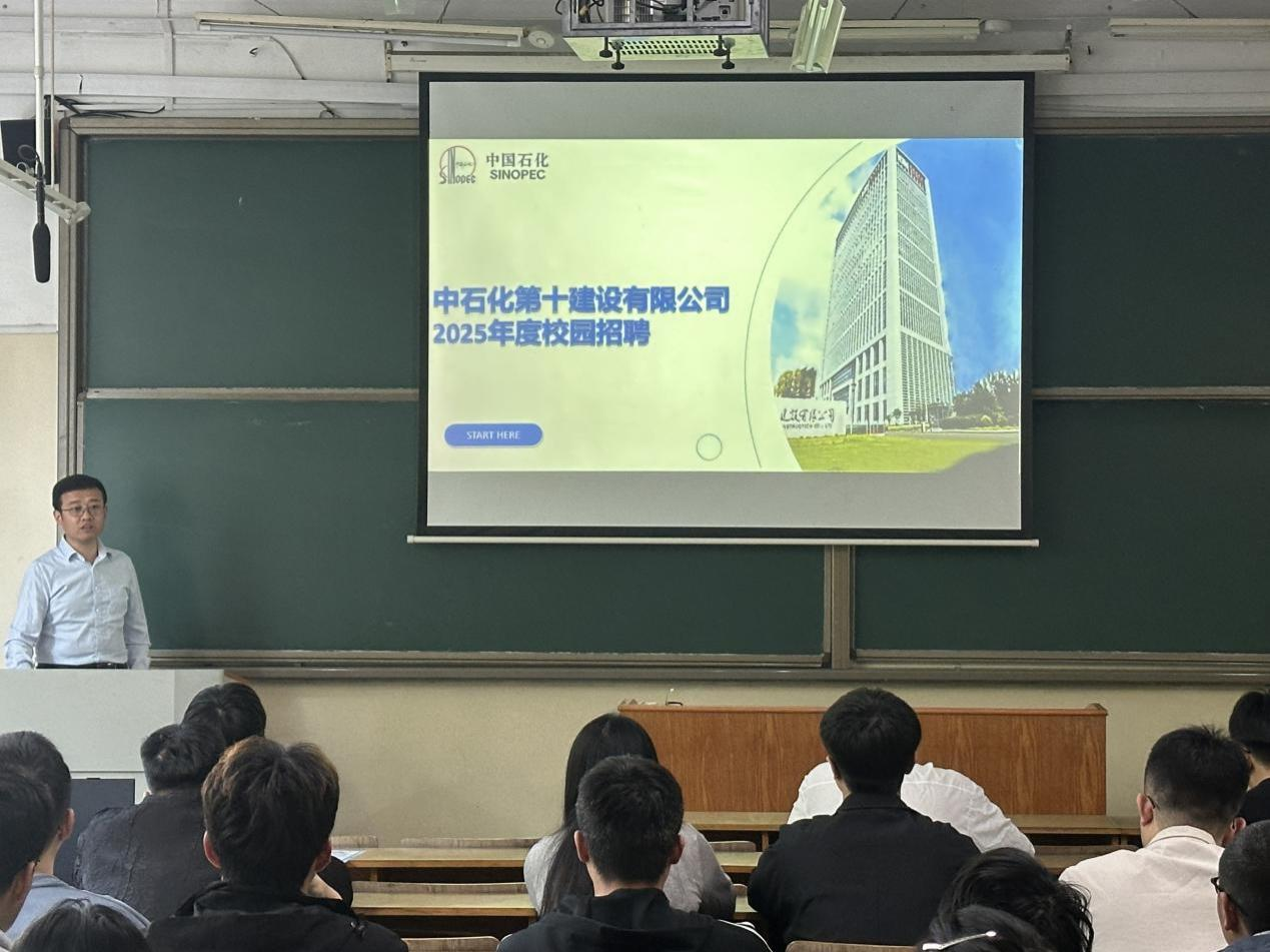 10月10日,全球最大顶级体育平台在东校园5#204举行中石化第十建设有限公司专场招聘会,部分2025届毕业生参加,招聘会由辅导员李明蔚主持。