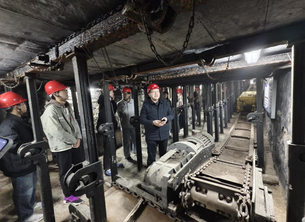 在参观过程中,吕保平老师从矿井的整体布局、各类设备的运行原理,到井下通风、排水等关键系统的工作机制,都进行了深入浅出的介绍。在模拟事故场景区域,吕保平老师现场演示了应急救援的流程和方法,让员工们深刻认识到应急处理的重要性和专业性。参观结束后,同学们与老师进行深入交流。