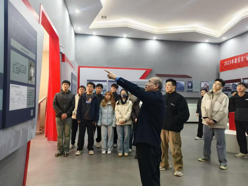 在支部委员的带领下,全体党员面向革命烈士纪念碑庄严列队,高举右拳重温入党誓词。“我志愿加入中国共产党……”铿锵有力的宣誓声在陵园上空回荡,彰显着新时代青年党员继承先烈遗志、勇担时代使命的坚定决心。随后,谢清勇带领全体党员参观烈士事迹展览馆,讲解员生动讲述泰安地区革命先烈抛头颅、洒热血的英雄事迹,当看到泛黄的战地书、破损的皮箱等文物时,党员们驻足良久。