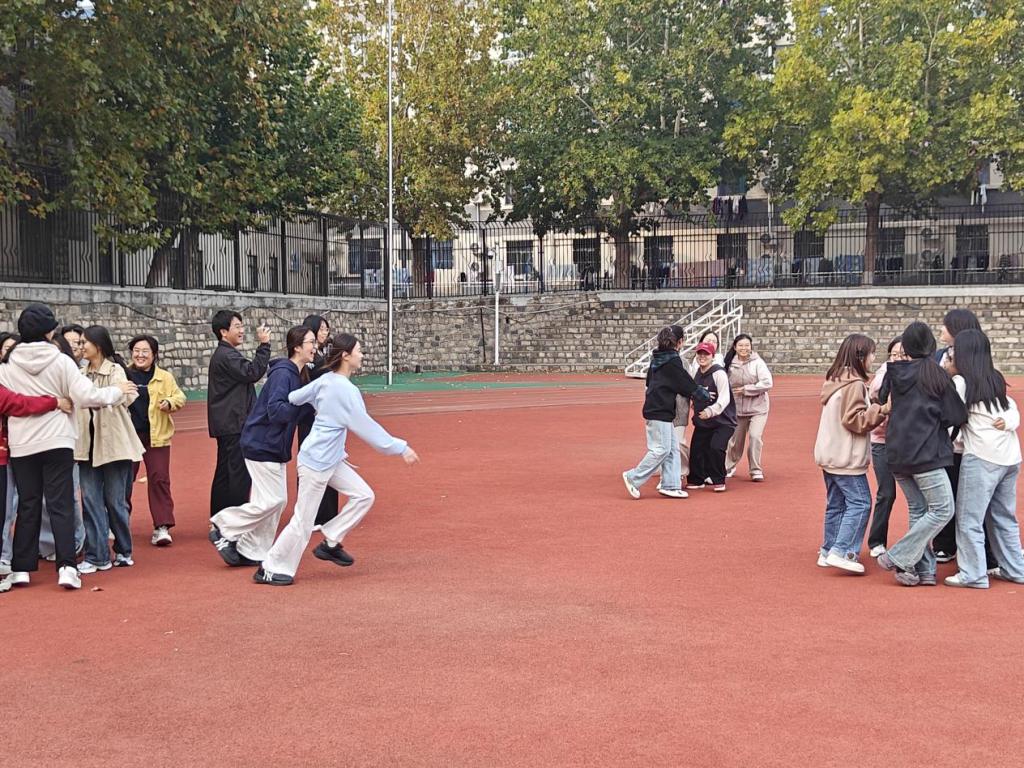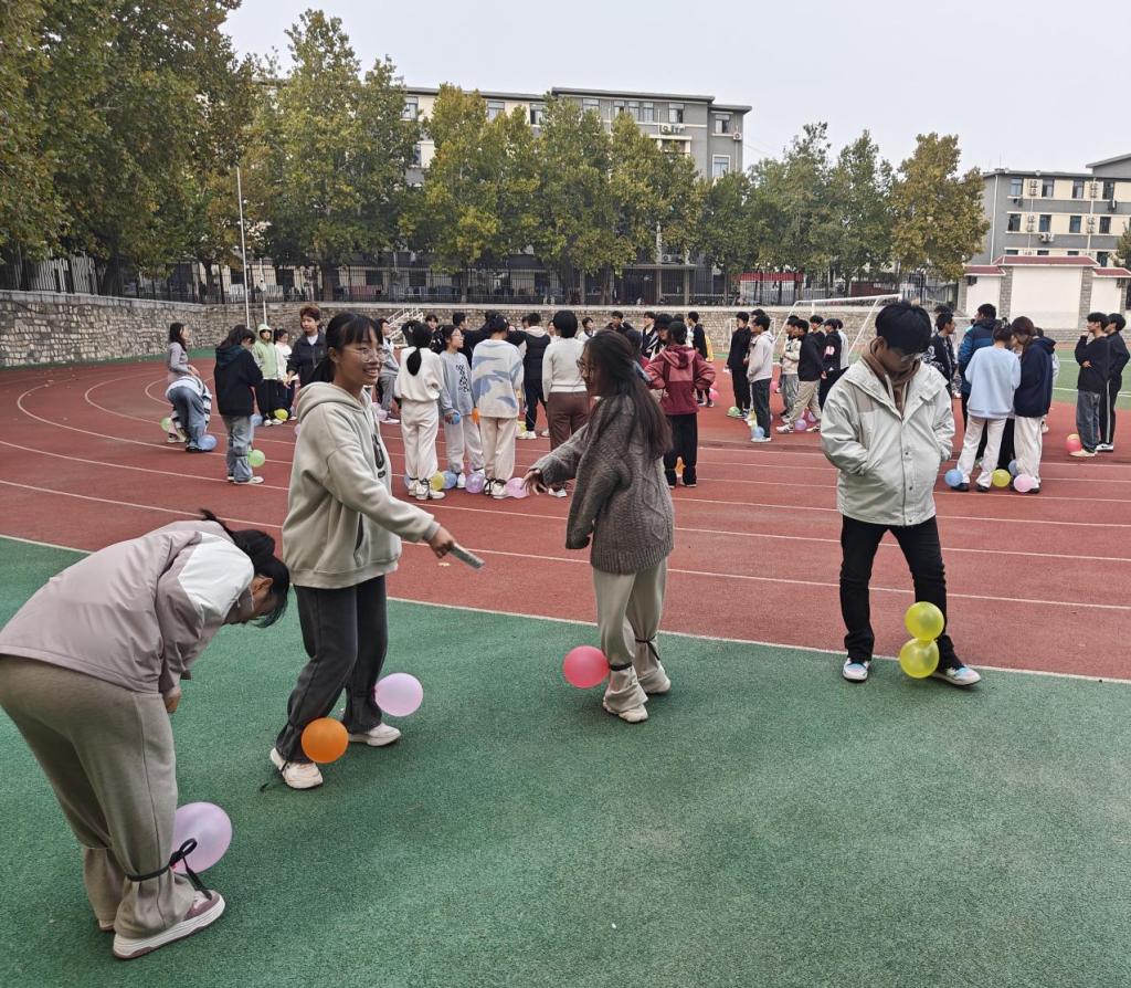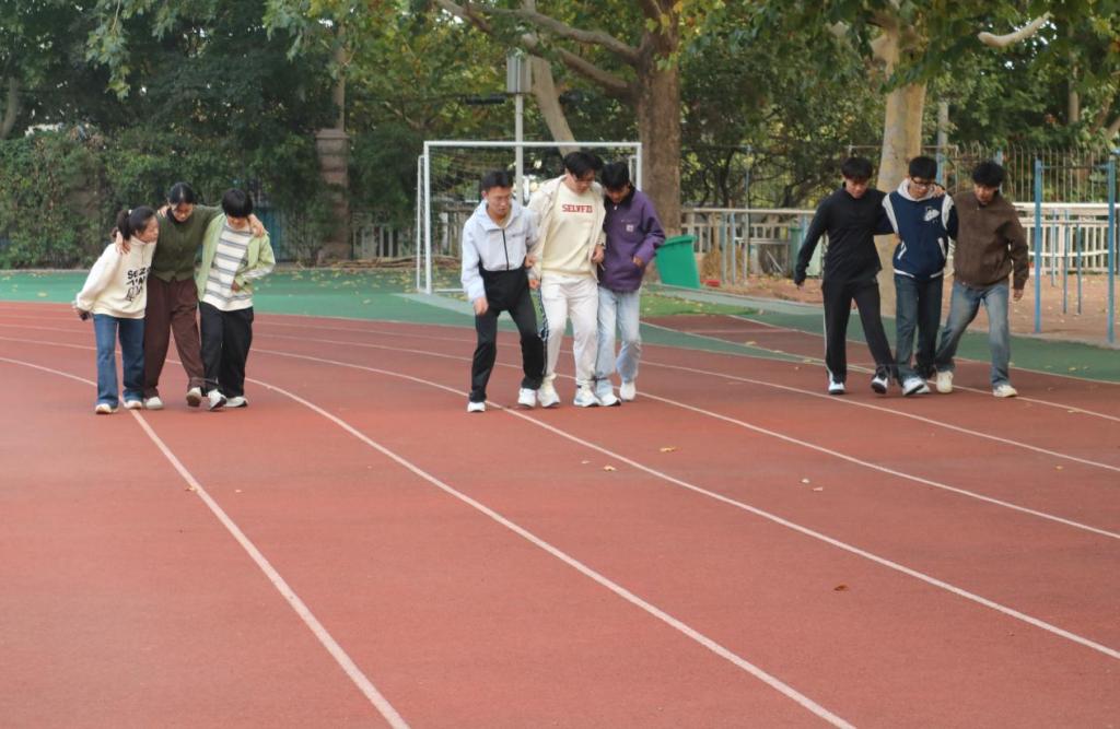 与传统运动会大不相同,这里没有激烈竞技项目,更多的是趣味与挑战。比赛项目包括“两人三足”、“背夹球”、“小型保龄球”、“抱团取暖”等趣味十足的活动。同学们积极参与每个项目,“两人三足”比赛中,同学们肩并着肩、脚绑着脚,齐心协力冲向终点,现场气氛热烈而欢快。“背夹球”项目考验着大家的平衡感与协作能力,每组同学都小心翼翼地夹着球向前挪动。“抱团取暖”更是将运动会推向了高潮,大家围成一圈跟着音乐声奔跑着等待指令,随时准备着以指定人数抱成一团。运动会的最后,每个人在脚上绑上气球,互相追逐去踩别人的气球,最后留在场上且脚上还有气球的玩家获胜。现场笑声不断,整个过程紧张刺激又充满乐趣。