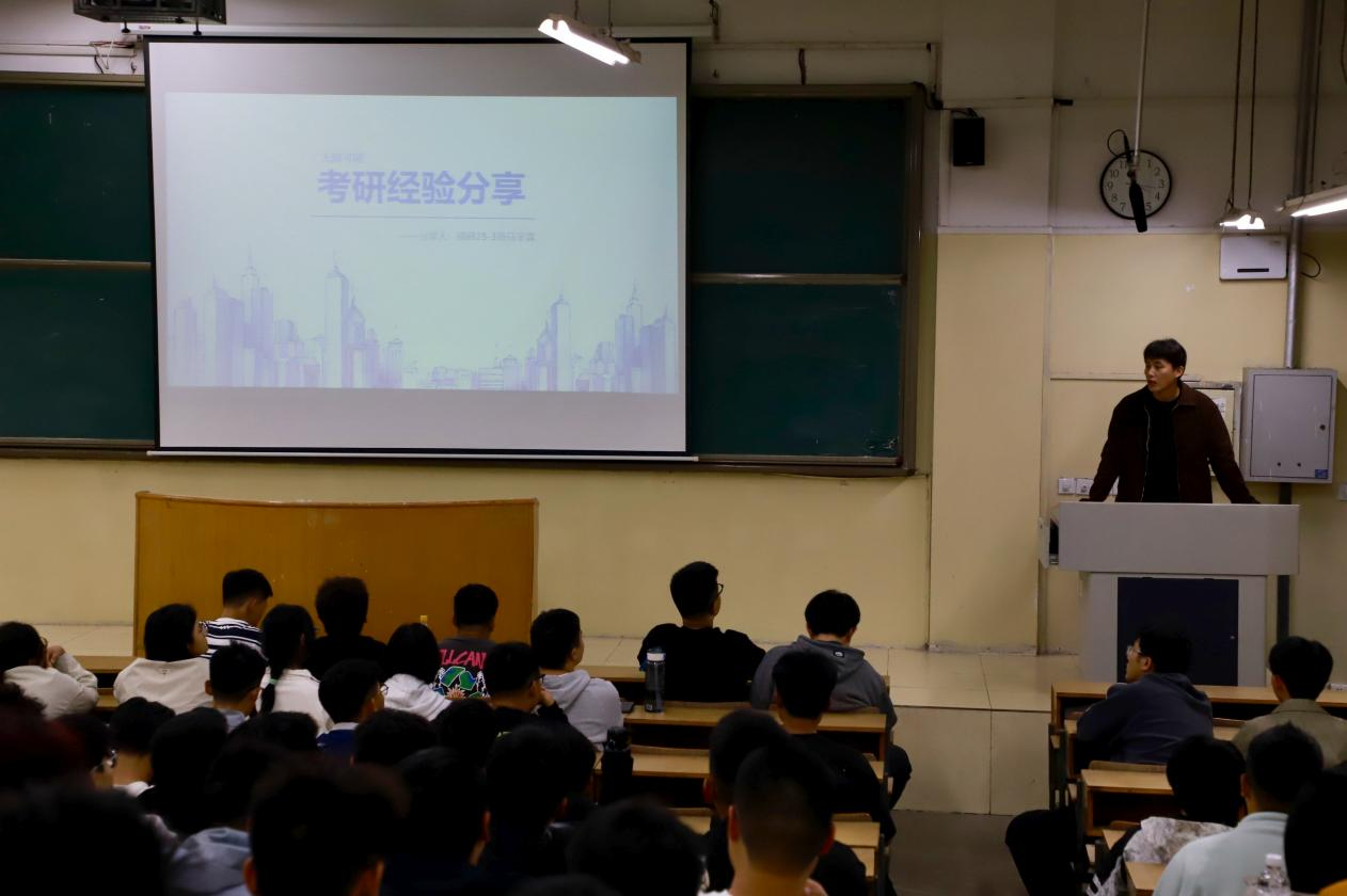 会上,五位主讲人结合自身备考经历,详细介绍了考研报名流程和关键时间节点,分享了备考书目与复习安排,并给出了三点备考建议。一是尽早明确目标,科学规划学业,建议结合专业方向与自身兴趣确定目标院校及专业,扎实学好基础课程,为考研复习筑牢根基。二是优化学习方法,提升学习效率,根据各科特点制定针对性复习计划,合理分配学习时间,避免盲目刷题。三是保持积极心态,注重劳逸结合,鼓励新生在备考过程中及时调整状态,通过适当运动、交流沟通缓解压力,避免过度焦虑。
