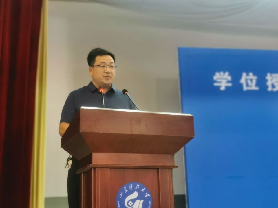 授予仪式上,王民、贾宏俊逐一为获得学士学位的毕业生拨穗、颁发学位证书,并送上殷切的希望与美好的祝福,毕业生依次登台鞠躬致谢,合影留念后,用握手和拥抱的方式表达对母校培育的感激之情。长风破浪会有时,直挂云帆济沧海。2021届毕业生们必将带着老师们的谆谆教诲,不忘“惟真求新”的校训,肩负祖国与人民寄予的厚望,在与时俱进的潮流中砥砺前行,于更广阔的天地间去追寻他们的无限可能。(文/图:周长伟)